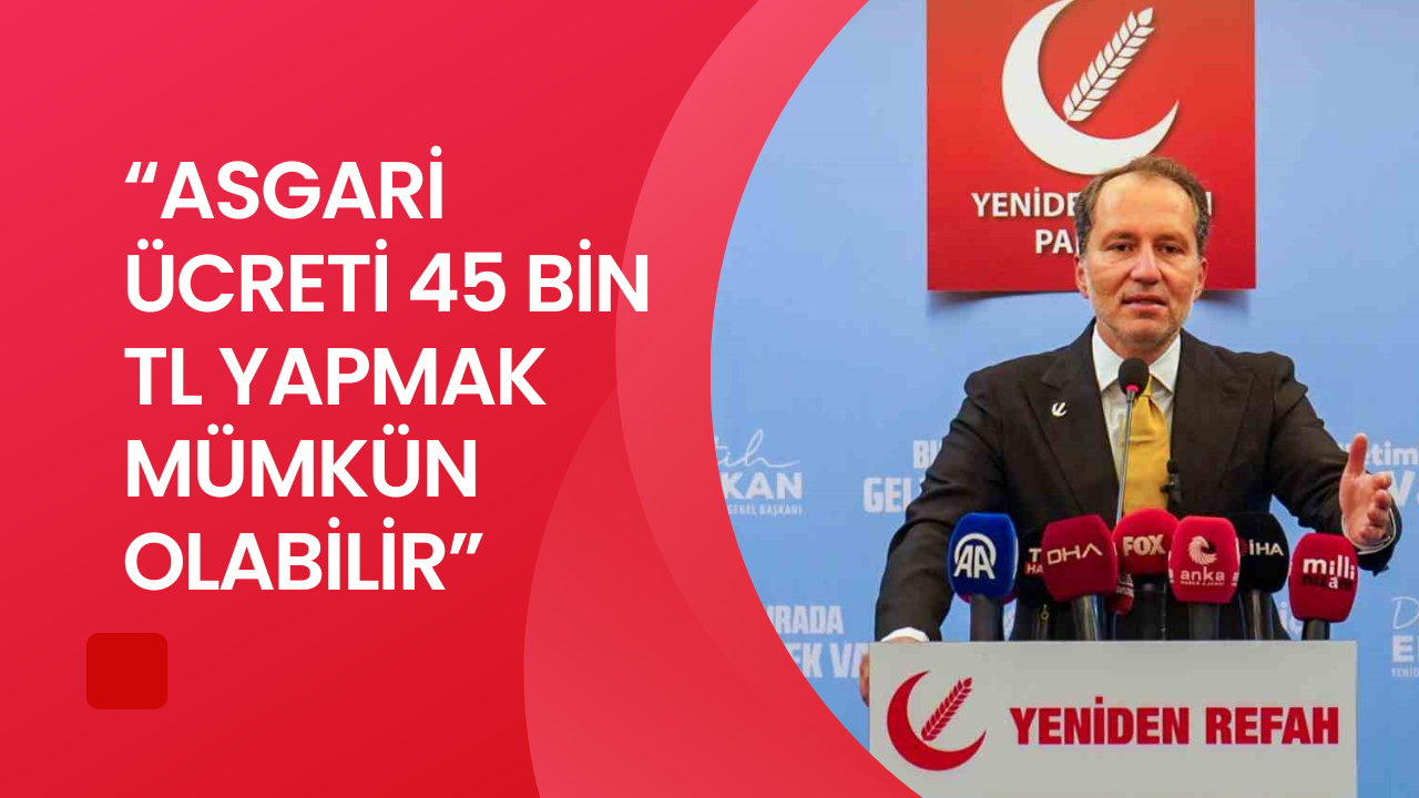 Erbakan, asgari ücret hesaplamasında yalnızca enflasyon oranının değil, ekonomik büyümenin de dikkate alınması gerektiğini ifade ederek, “Yüzde 50’lik bir artış 33 bin TL yapıyor. Ancak büyüme payı da eklenmeli. Ayrıca iki asgari ücretlinin toplam geliri bir hanede yoksulluk sınırını karşılamalı. Bu yüzden 45 bin TL adil bir rakam” değerlendirmesinde bulundu.
