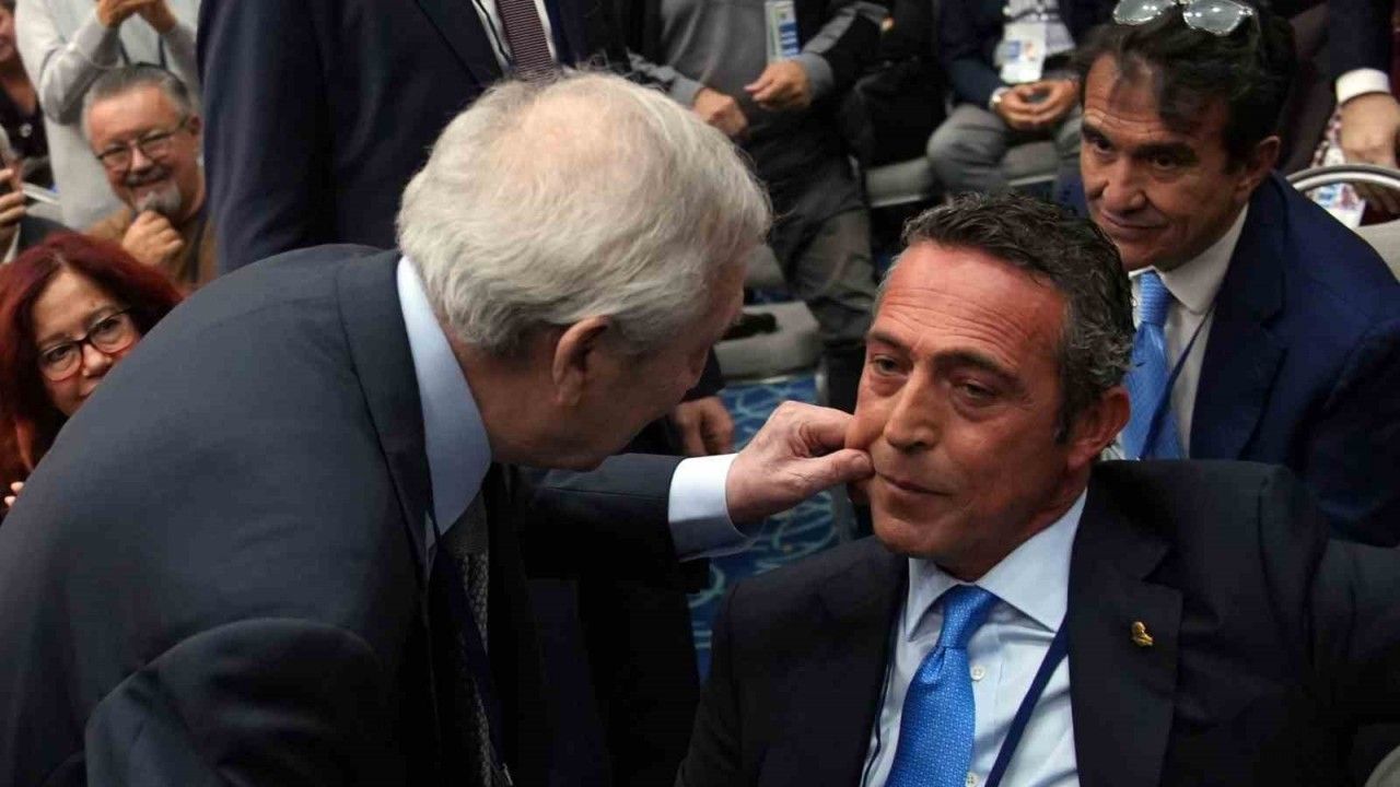 Fenerbahçe eski başkanları Aziz Yıldırım ile Ali Koç arasında, kürsü konuşmaları sonrası diyalog dikkat çekti. Yıldırım, konuşmasının ardından Koç’un yanına gelerek "Beni unut" derken, Koç da "Sağlığınıza çok üzülüyorum, Allah yardımcınız olsun" yorumunu yaptı.