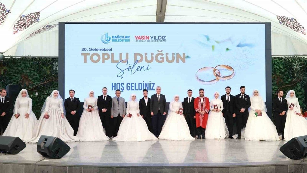 Bağcılar Belediyesi’nin bu yıl 30’uncusunu düzenlediği Geleneksel Toplu Düğün Şöleni, yine anlamlı ve duygusal anlara sahne oldu. Dr. Kadir Topbaş Halk Sarayı’nda gerçekleştirilen törende 8 çift dünyaevine girerken, nikahlarını Bağcılar Belediye Başkanı Yasin Yıldız kıydı. Çiftlerin nikah şahitliklerini ise Ticaret Bakanı Ömer Bolat, Bağcılar Kaymakamı Abdullah Uçgun ve diğer protokol üyeleri üstlendi.