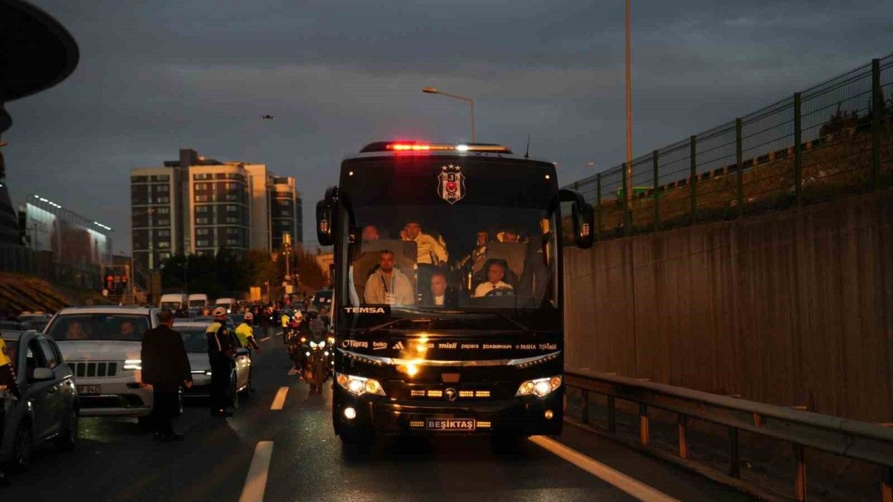 Trendyol Süper Lig’in 8. haftasında Beşiktaş, bugün saat 20.00’de Galatasaray’a konuk olacak. Derbi hazırlıklarını tamamlayan siyah-beyazlılar, kamp yaptığı Ümraniye Nevzat Demir Tesisleri’nden hareket ederek mücadelenin oynanacağı RAMS Park’a ulaştı. Beşiktaşlı kafile, yoğun güvenlik önlemleri altında stada giriş yaptı.