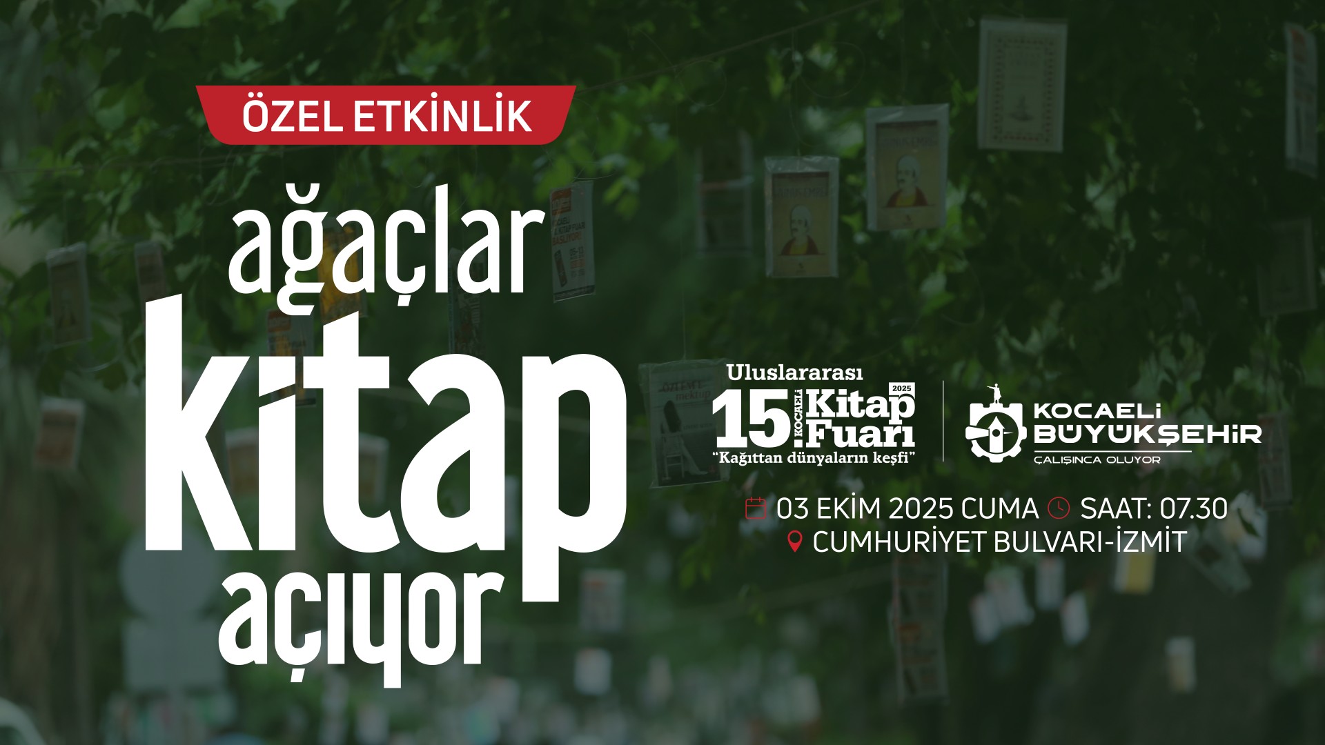 15. Kocaeli Kitap Fuarı başlamadan bir gün önce, kentin asırlık çınarları ve parklardaki ağaçlar kitaplarla süslenecek. Vatandaşlar, sabahın erken saatlerinde dallardan kitap toplayarak edebiyat dolu bir sabaha uyanacak.
