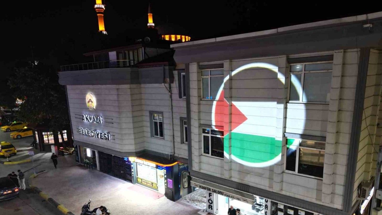 Sakarya’nın Akyazı Belediyesi, Filistin halkına yönelik saldırılara karşı farkındalık oluşturmak ve dayanışma mesajı vermek amacıyla anlamlı bir çalışmaya imza attı. Belediye binasının cephesine dev Filistin bayrağı yansıtılırken, belediyeye ait hizmet araçlarına da Filistin bayrakları asıldı.