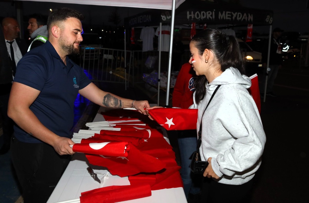Kocaeli Büyükşehir Belediyesi’nin maç gününe özel sürprizi ise stat önünde dağıttığı binlerce Türk bayrağı oldu. Tramvayın son durağı ve stadyum girişleri başta olmak üzere farklı noktalarda yapılan bayrak dağıtımına taraftarlar büyük ilgi gösterdi.
