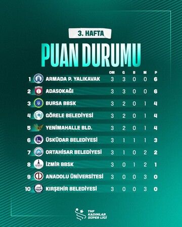 Kadınlar Süper Lig 3. Hafta Müsabaka Sonuçları: