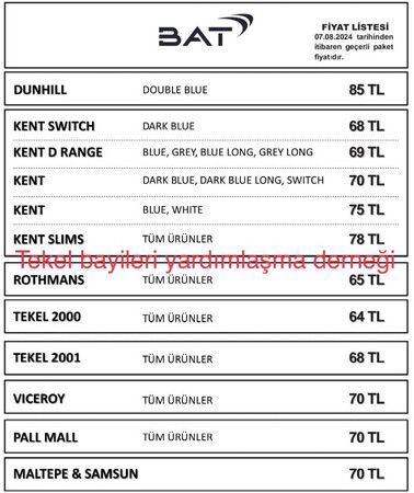 Sigara fiyatlarına yapılan zamlar devam ederken, British American Tobacco (BAT), 8 Mart 2025 itibarıyla geçerli olacak yeni fiyat listesini duyurdu. Yapılan güncellemelere göre, bazı sigara markalarında belirgin artışlar yaşandı.
