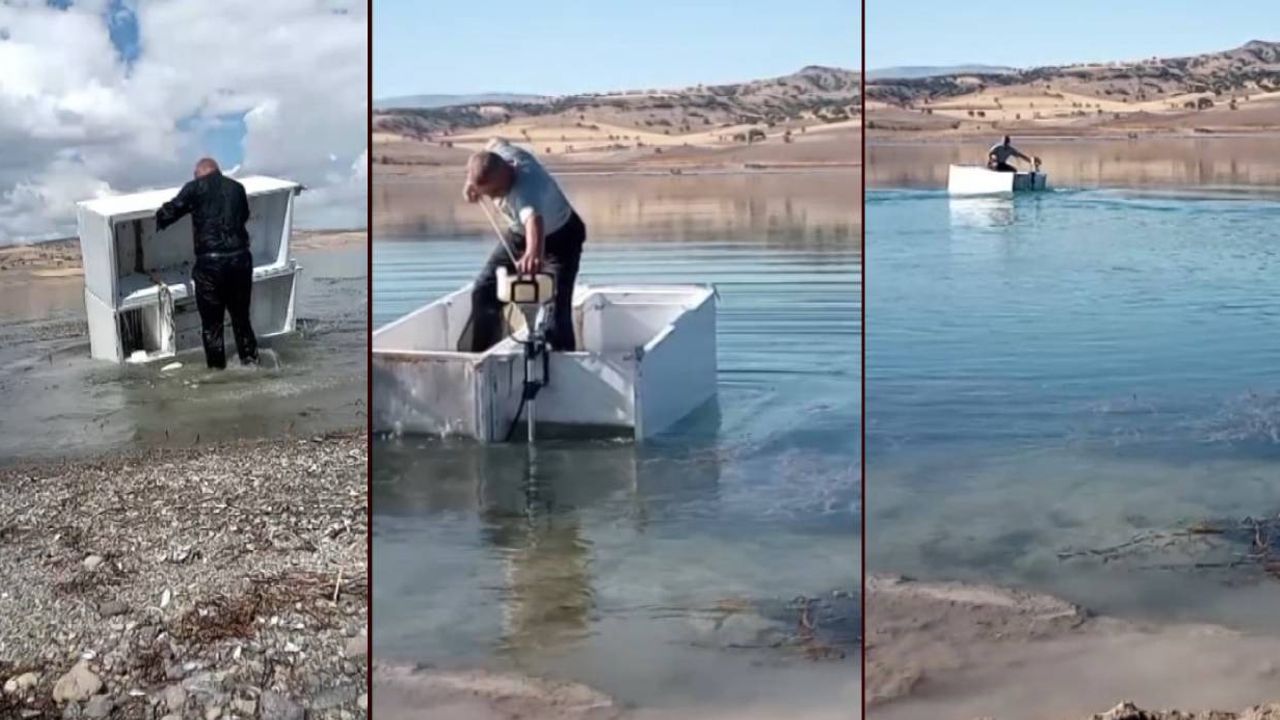 İki adet hurda buzdolabını birleştirip motor takarak barajda kullanılabilir hâle getiren Çökmez, “Teknolojiye ve el işlerine ilgim var. Daha önce kaybolan pedallı bisikletimin yerine, düşük maliyetli bir alternatif üretmek istedim. Şimdi bu kayıkla özgürce barajda gezebiliyorum” dedi.