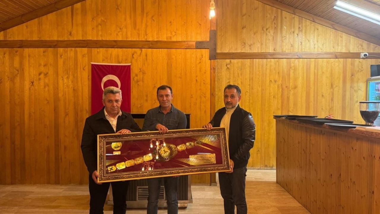 “Kandıra’mızın değerli iş adamlarından, geçmişte 2010, 2011, 2012, 2016 ve 2018 yıllarında güreş ağalığı yapmış olan Hasan İnci’ye katkılarından dolayı altın kemerini takdim ettik. Kulübümüze ve tarihi Namazgah Güreşleri’ne verdiği destekten dolayı kendisine şükranlarımızı sunuyoruz.”