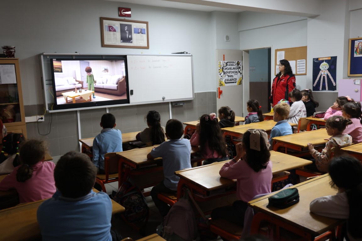 Etkinlik, afetlerle ilgili temel bilgilendirme sunumlarıyla başladı. Öğrencilere deprem, yangın ve sel gibi doğal afetlerin ne olduğu, nasıl geliştiği ve karşısında neler yapılması gerektiği sade ve anlaşılır bir dille anlatıldı. Sınıf içi eğitimlerde özellikle “hazırlıklı olmak” ve “panik yapmamak” gibi temel başlıklara vurgu yapıldı. Eğitmenler, çocukların yaş gruplarına uygun görseller ve örneklerle konuyu pekiştirdi. Böylece öğrenciler, teorik bilgileri zihinsel olarak kavrarken aynı zamanda dikkatle takip ettikleri konuları sorularla daha da derinleştirdi.