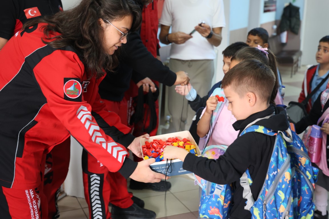 Tatbikatın sonunda, öğrencilere afet bilincini pekiştirmek ve bu farkındalığı günlük yaşamlarında da taşımaları için “hayatta kalma düdüğü” ve “hayatta kalma bilekliği” hediye edildi. Bu sembolik hediyeler, öğrencilerin öğrendiklerini unutmamaları adına hem eğitici hem de motive edici birer araç oldu. Eğitimle birlikte çocuklara küçük yaşta sorumluluk duygusu aşılanırken, kriz anlarında güvenli davranmanın hayat kurtarıcı etkisi net biçimde gösterildi.