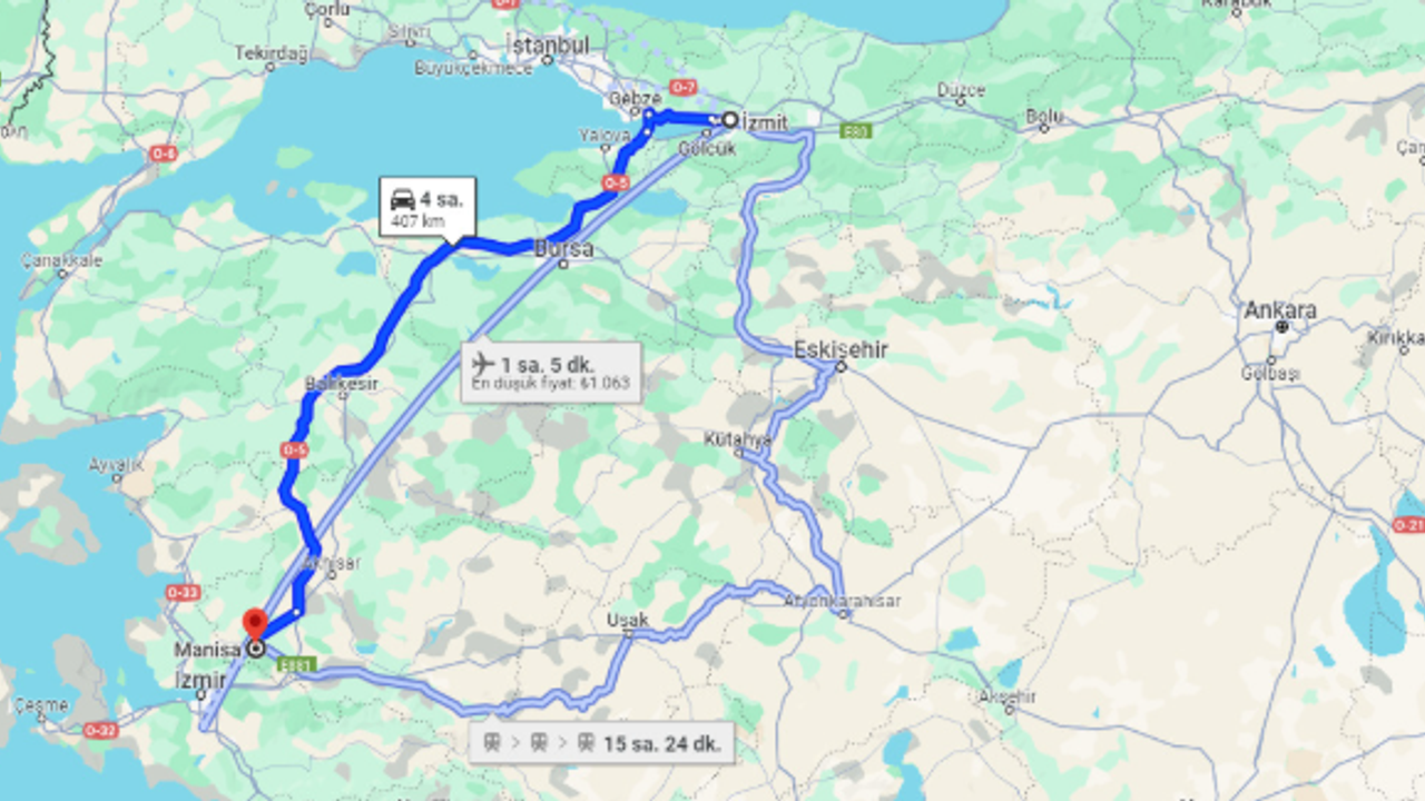 Kocaeli Manisa Arası Kaç Saat Sürer?
