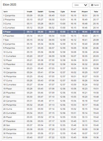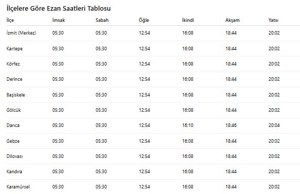 Kocaeli için diğer ezan saatleri de (5 Ekim 2025) göre şöyle: