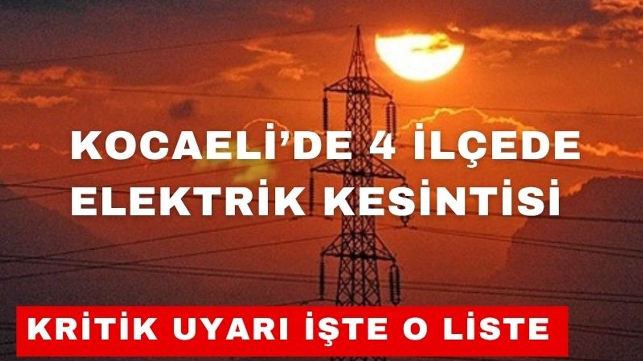 KOCAELİ'DE ELEKTRİK KESİNTİSİ YAŞANACAK İLÇE VE SOKAKLAR