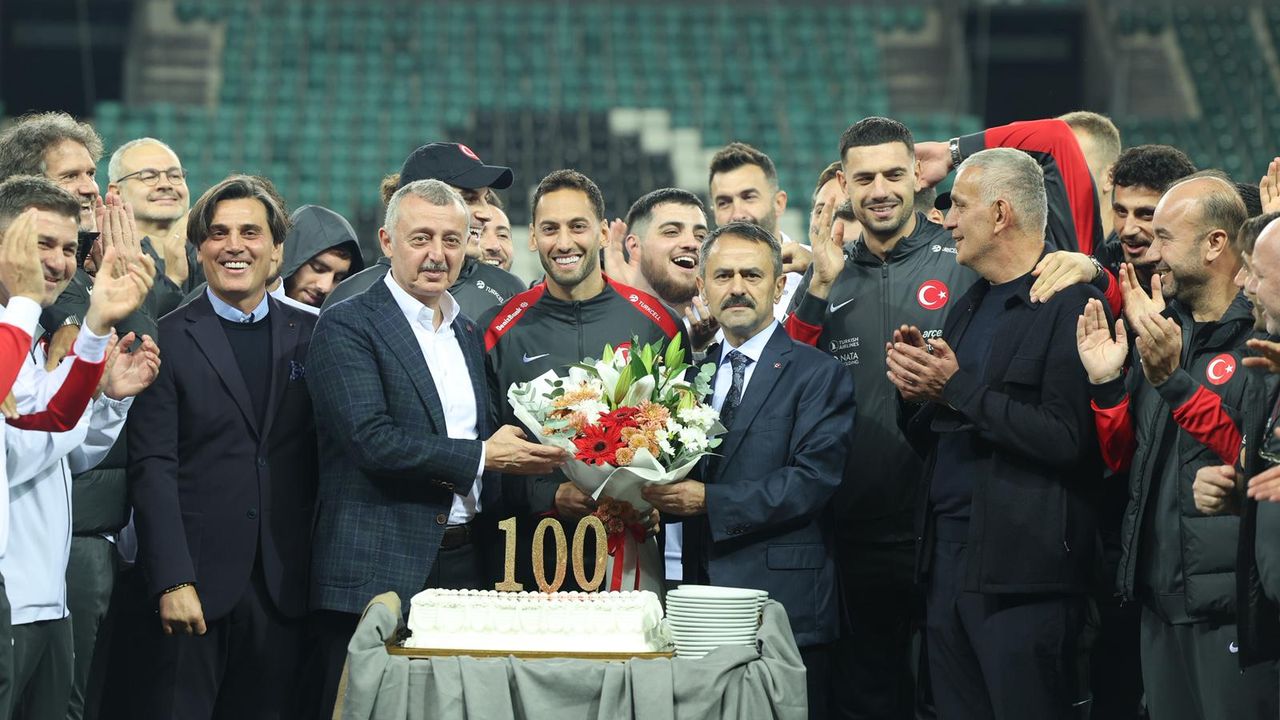 Vali Aktaş ve Başkan Büyükakın, Teknik Direktör Vincenzo Montella ve futbolcularla tek tek tokalaşarak başarı dileklerini iletti. Futbolcular adına takım kaptanı Hakan Çalhanoğlu’na çiçek takdim edildi. Başkan Büyükakın, son dönemde sergilenen performansın umut verici olduğunu belirterek, “Takımımıza güvenimiz tam. Gürcistan karşısında iyi futbolla galip geleceğimize inanıyoruz.” dedi.
