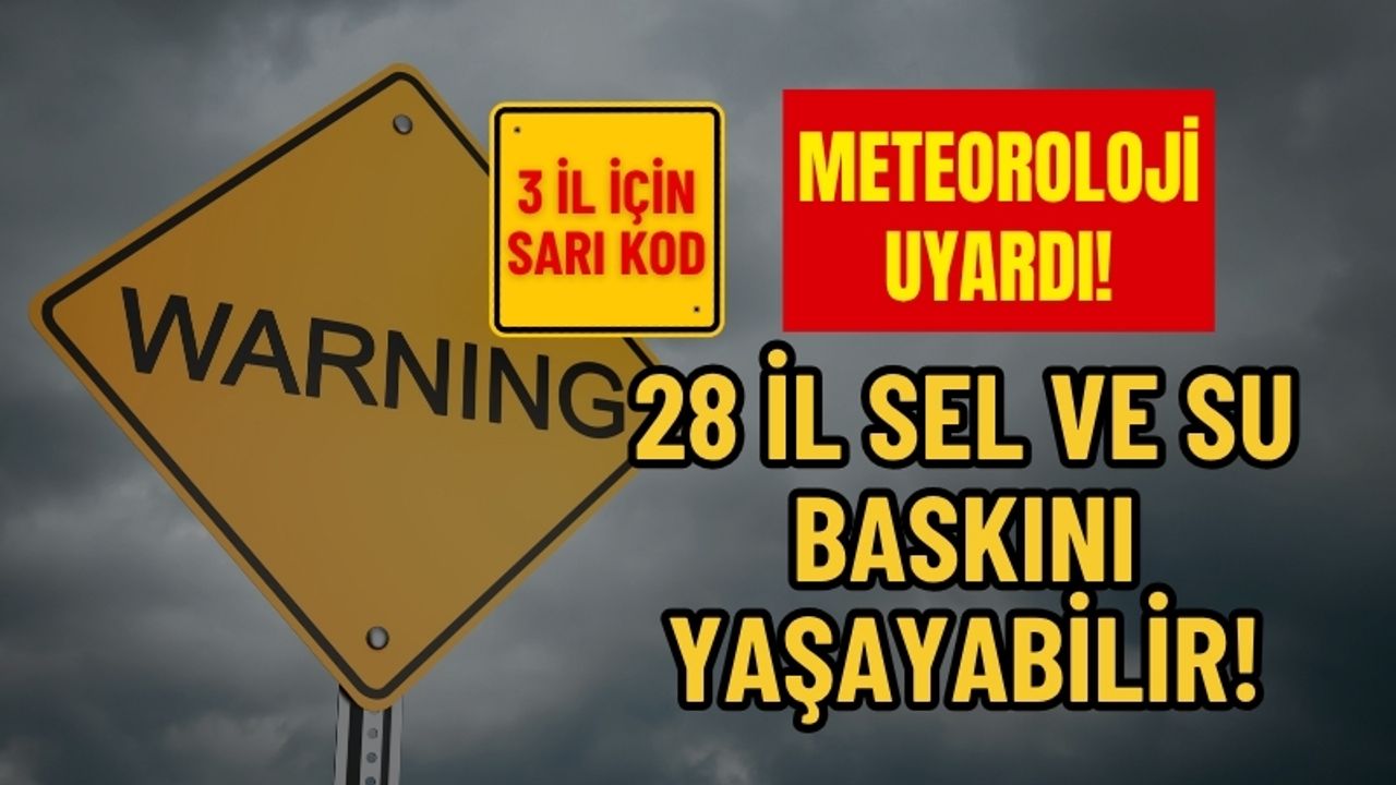 Meteoroloji Genel Müdürlüğü (MGM), Türkiye genelinde sağanak yağışların etkili olacağını duyurdu. Üçü sarı kodla olmak üzere 28 ilde gök gürültülü sağanak yağış bekleniyor. Vatandaşların sel, su baskını, yıldırım ve ulaşımda aksamalara karşı dikkatli ve tedbirli olması istendi.
