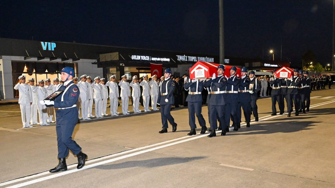 Askeri tören, saygı duruşu ve şehitler için okunan dualarla başladı. Hüzün dolu anların yaşandığı törende, şehitlerin Türk bayrağına sarılı naaşları tören mangası eşliğinde Cengiz Topel Havaalanı’ndan askeri uçaklarla memleketleri Bursa ve Manisa’ya gönderildi.