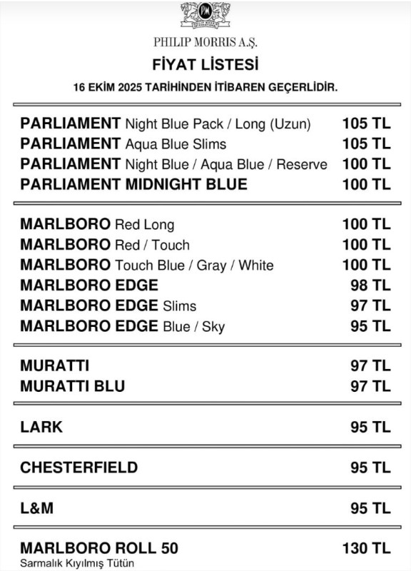 Güncel Philip Morris sigara fiyatları (16 Ekim 2025):