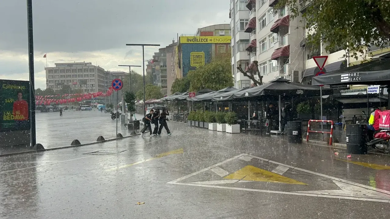 Vatandaşlar, bir anda bastıran sağanak karşısında hazırlıksız yakalanırken, motosikletli kuryeler ve yaya haldeki birçok kişi yağmurdan korunmak için kafelerin tentelerine sığınmak zorunda kaldı.