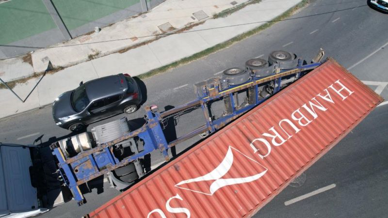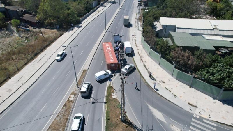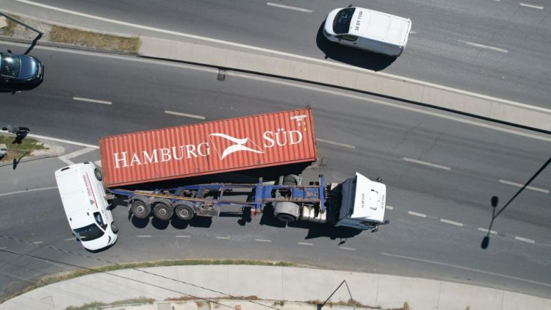 Kazadan saniyeler önce bir aracın konteynerin devrildiği şeritten geçtiği, ardından tırın dönüşü sırasında konteynerin yola düştüğü güvenlik kamerasına yansıdı. O sırada cadde üzerinde araç bulunmaması, muhtemel bir faciayı önledi. Kaza sonrası yol kısa süreliğine trafiğe kapatılırken, polis ekipleri güvenlik önlemleri aldı.
