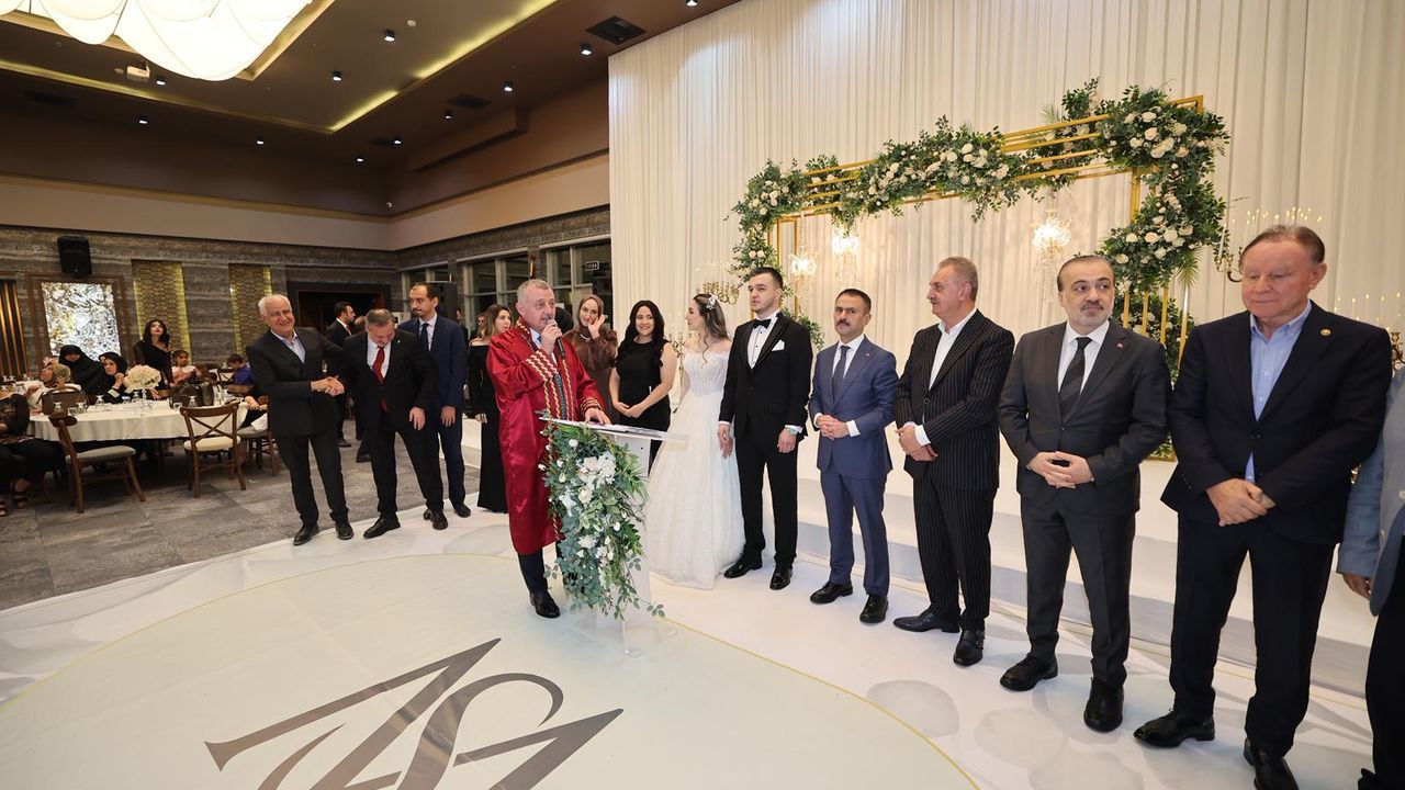 Kocaeli Büyükşehir Belediye Başkanı Doç. Dr. Tahir Büyükakın’ın kıydığı nikâh töreni, samimi ve neşeli bir atmosferde gerçekleşti. Törene çok sayıda davetli katılırken, genç çiftin nikâh şahitliğini üstlenen Vali İlhami Aktaş, Merve ve A. Samet çiftine bir ömür boyu sağlık, huzur ve mutluluk temennisinde bulundu.