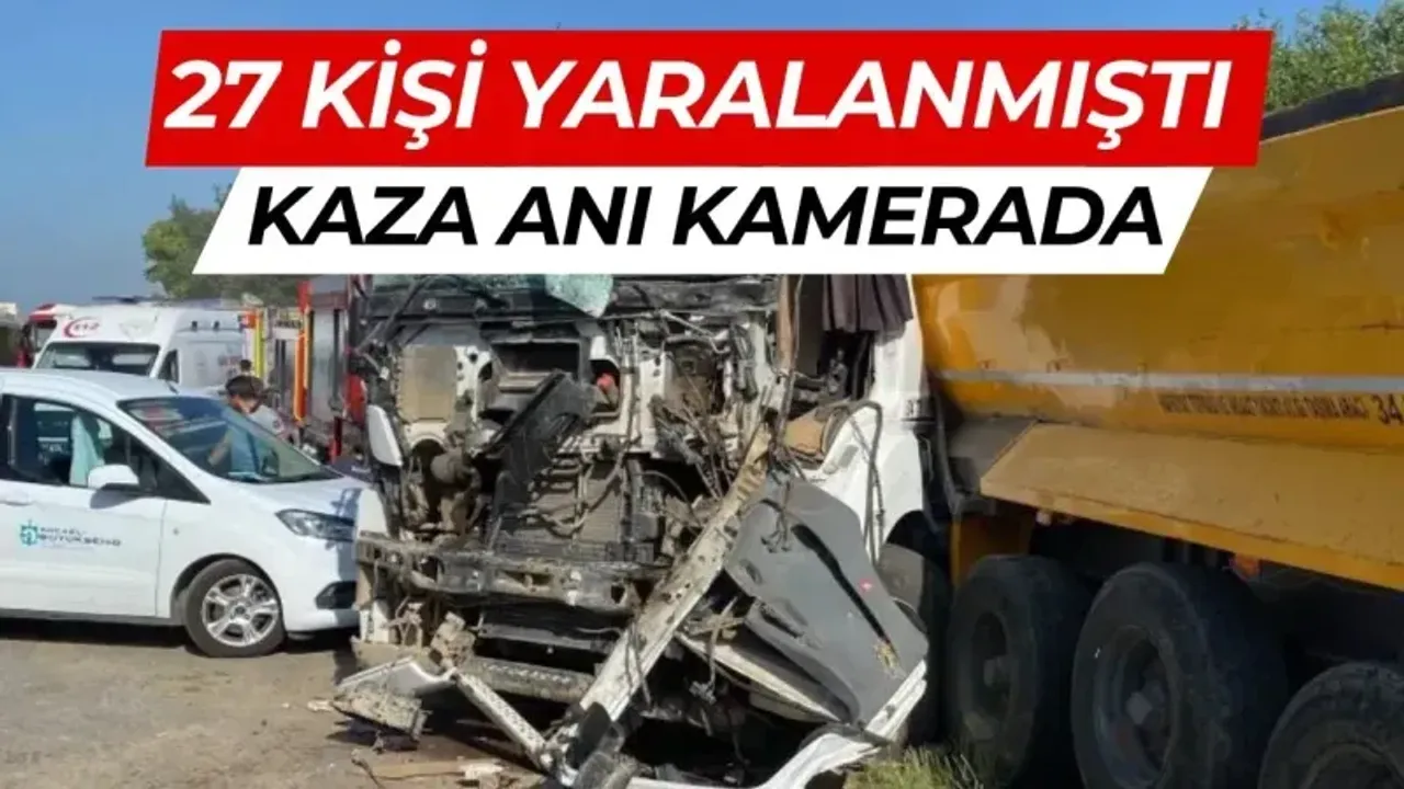 Kartepe ilçesinde işçileri taşıyan otobüs ile tırın çarpışması sonucu 27 kişinin yaralandığı kazanın güvenlik kamera görüntüsü ortaya çıktı.