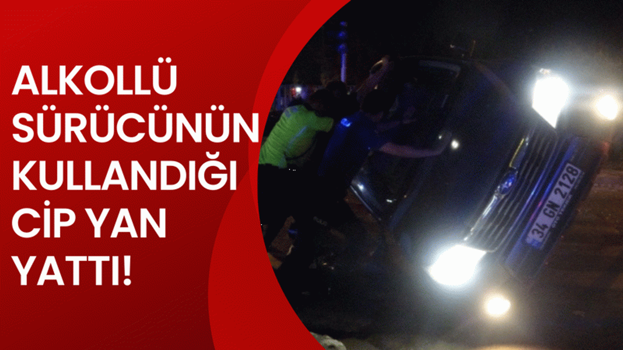 İzmit ilçesinde alkollü sürücünün kontrolünden çıkan cip sinyalizasyon direğine çarpıp yan yattı. Kazada 2 kişi yaralanırken, o anlar anbean başka bir aracın yol kamerasına yansıdı.