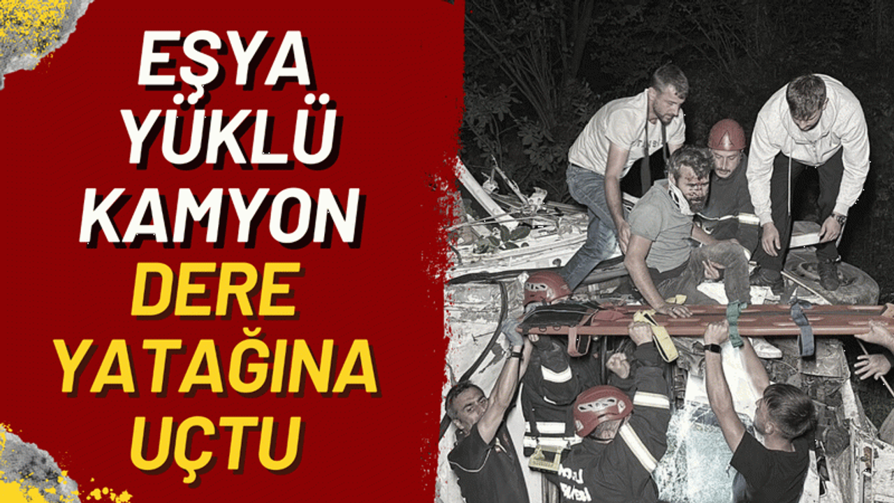 Kartepe ilçesinde virajı alamayan eşya yüklü kamyon dere yatağına uçtu. 2 kişinin kamyonda sıkıştığı kazada film gibi kurtarma operasyonu gerçekleştirildi. Yaralanan 2 kişi hastaneye kaldırıldı.