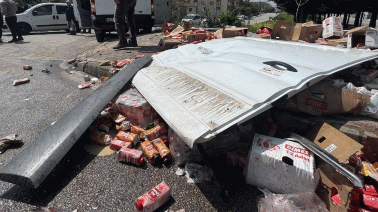 Derince ilçesinde hafif ticari araç ile çarpışan panelvanın içinde bulunan meşrubatlar yola saçıldı, bir kişi ise yaralandı.