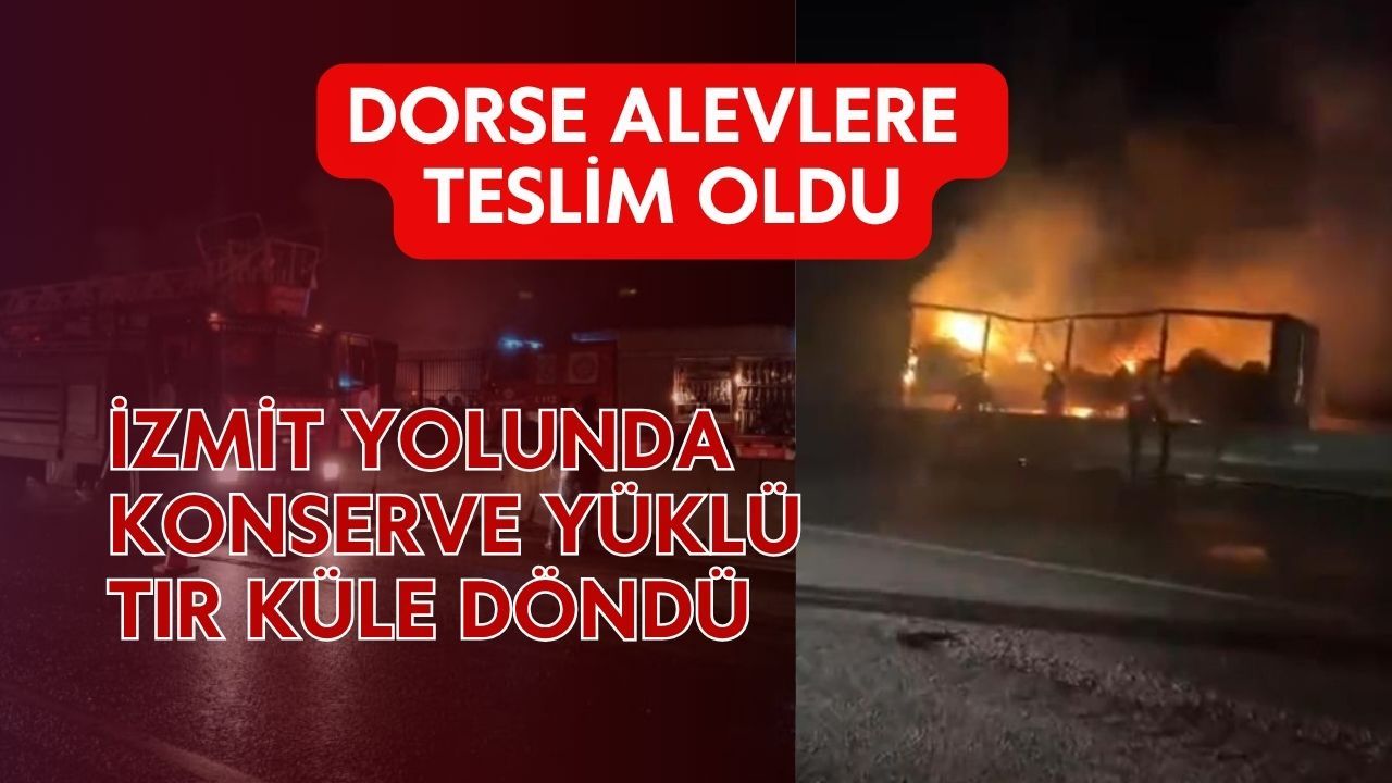 Yalova-İzmit kara yolunda seyir halindeyken dorsesi alev alan konserve yüklü tırda büyük yangın çıktı. Olayda can kaybı yaşanmadı.